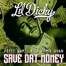 "Save Dat Money" (stylized as $ave Dat Money), is a novelty song by American rapper Lil Dicky featuring fellow American rappers Fetty Wap and Rich Homie Quan, from the former's debut studio album Professional Rapper. It was released on June 10, 2015 as the album's third single. It was produced by Money Alwayz and peaked at number 71 on the Billboard Hot 100.[1]