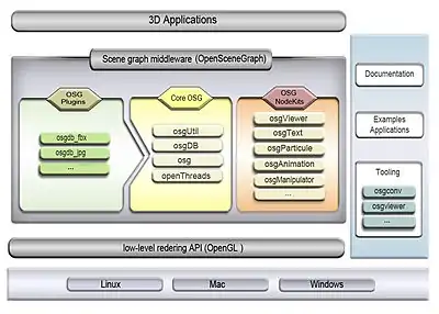 Architecture of OpenSceneGraph, an open-source 3D graphics API supporting feature-rich and widely adopted scene graph implementation.