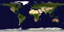 An equirectangular projection of the Earth; the standard parallel is the equator.