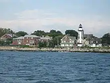 There are two points of interest in Sea Gate. Located on Beach 47th Street in Sea Gate is the 75-foot-tall (23 m) Coney Island Light, is a lighthouse built in 1890, before the area was populated. The lighthouse is the former home of Frank Schubert, the United States' last civilian lighthouse keeper, who died in 2003.[1] The chapel in Sea Gate, once used for services and built in 1901, is a historical building now used for social events, yoga classes, and is a polling site at election times. The Chapel with its stained-glass windows is the first structure seen when entering the main security gate.[1]