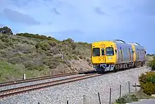Prior to 2014, most trains were operated by 3000 class railcars augmented at times by 2000 class railcars. Since the electrification of the line, the latter are no longer authorised to operate on the line.[1] Most services are now operated by 4000 class electric multiple units. A number of railcars needed for peak-hour services are now stabled overnight in secure sidings at Port Stanvac, north of Lonsdale station, and at a much bigger facility adjacent to Seaford Meadows. The last freight trains on the line, to and from Port Stanvac Refinery, ceased in the late 1990s.