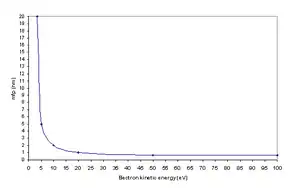 For SiO2, for a primary electron energy of 100 eV, the secondary electron range is up to 20 nm from the point of incidence.[4][5]