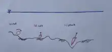 In 2002, Peter Wilcock and T. A. Kenworthy, following Peter Wilcock (1998),[32] published a sediment bed-load transport formula that works with only two sediments fractions, i.e. sand and gravel fractions.[33] A mixed-sized sediment bed-load transport model using only two fractions offers practical advantages in terms of both computational and conceptual modeling by taking into account the nonlinear effects of sand presence in gravel beds on bed-load transport rate of both fractions. In fact, in the two-fraction bed load formula appears a new ingredient with respect to that of Meyer-Peter and Müller that is the proportion of fraction on the bed surface where the subscript represents either the sand (s) or gravel (g) fraction. The proportion , as a function of sand content , physically represents the relative influence of the mechanisms controlling sand and gravel transport, associated with the change from a clast-supported to matrix-supported gravel bed. Moreover, since spans between 0 and 1, phenomena that vary with include the relative size effects producing "hiding" of fine grains and "exposure" of coarse grains. The "hiding" effect takes into account the fact that, while small grains are inherently more mobile than large grains, on a mixed-grain-size bed, they may be trapped in deep pockets between large grains. Likewise, a large grain on a bed of small particles will be stuck in a much smaller pocket than if it were on a bed of grains of the same size, which the Meyer-Peter and Müller formula refers to. In gravel-bed rivers, this can cause "equal mobility", in which small grains can move just as easily as large ones.[31] As sand is added to the system, it moves away from the "equal mobility" portion of the hiding function to one in which grain size again matters.[33]