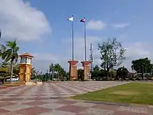 - Segamat Square (Malay: Dataran Segamat) - The square was constructed in 1996 as the main venue for Johor's state level celebration of the Malaysian National Day. In 2005, when Segamat was once again chosen as the state-level host, Dataran Segamat was renovated. It also houses the clock tower and a durian replica that makes Dataran Segamat the landmark of Segamat. However in recent years the statue has been removed.Location: 2°30'40"N ; 102°48'50"E.