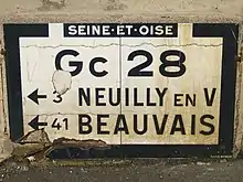 Seine-et-Oise (French pronunciation: [sɛn‿e waz]) is a former department of France, which encompassed the western, northern and southern parts of the metropolitan area of Paris.[1] Its prefecture was Versailles and its administrative number was 78. Seine-et-Oise was disbanded in 1968 as part of the reorganisation of the departments of the Paris metropolitan area. The newly-created Yvelines department inherited the 78 number.[2]
