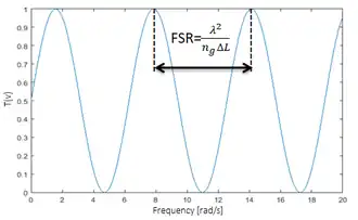 where, is an amplitude coefficient and is the group index. It is possible to carry out the conversion appropriately by calibrating the path difference at any optical frequency (therefore to any laser wavelength). The path difference determines both the Free Spectral Range (FSR) of the instrument, coinciding with the bandwidth between two consecutive peaks of the transfer function, and the filter sensitivity. In particular, if the length of the Mach-Zehnder's path difference is large, then the sensitivity of the filter will be high, so that the converted signal amplitude is increased; while, if the length of the Mach-Zehnder's path difference is small, then the sensitivity of the filter will be low, so that the converted signal amplitude is reduced: [5]