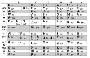 - 1 2 3 4 5 "Cherokee language, writing system and pronunciation". omniglot.com. Retrieved 19 March 2021.