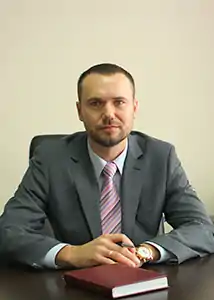 Serhiy Mykolayovych Shkarlet (Ukrainian: Сергій Миколайович Шкарлет; born 19 October 1972[2]) is a Ukrainian economist and politician. On 25 June 2020 he was assigned as acting Minister of Education and Science.[3] On 17 December 2020, the Verkhovna Rada (Ukraine's national parliament) appointed Shkarlet as Minister of Education and Science.[4] Parliament dismissed him 20 March 2023.[5]