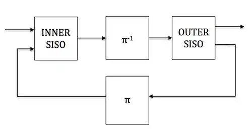 The SCCC decoder includes two soft-in-soft-out (SISO) decoders and an interleaver. While shown as separate units, the two SISO decoders may share all or part of their circuitry. The SISO decoding may be done is serial or parallel fashion, or some combination thereof. The SISO decoding is typically done using Maximum a posteriori (MAP) decoders using the BCJR algorithm.