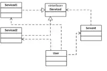- The serviced classes (geometric objects from our example) don’t know about servant, but they implement the “IServiced” interface. The user class just calls the method of servant and passes serviced objects as parameters. This situation is shown on figure 1.