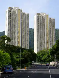 Tsz Oi Court (Chinese: 慈愛苑) is a Home Ownership Scheme estate in Tsz Wan Shan, next to Tsz Ching Estate. The site was formerly Tsz Oi Estate (Chinese: 慈愛邨), which included Blocks 33 to 47 in Tsz Wan Shan Estate.[4][5] In 1985, Blocks 40 was found to have structural problems by the Hong Kong Housing Authority.[3] After redevelopment, the estate was converted to HOS housing and was developed into 3 phases.[13] Phase 1 and 2 has 6 blocks built in 1997[14] while Phase 3 has 6 blocks built in 2000.[15]