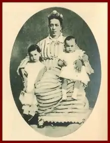 She was often referred to in the sources as "Walida" or "Mother". In 1866, fourteen years after Tewfik's birth, Ismail married Shafaq Nur as the Egyptian law required to marry the mother of the heir apparent, and elevated her to the position of the "Fourth Princess". Not long after, she and her son established a separate residence in al-Qubba Palace.[2][3] She took her due place with the other wives of Ismail Pasha on all state occasions.[4] In Egypt she was known as Deurtundju Hanim or Fourth Lady.[5] She mostly wore traditional Ottoman garments, featuring a few western details.[1]