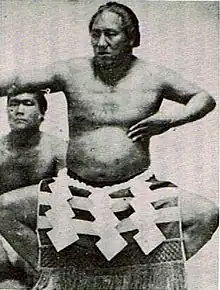 Shiranui (left) and Kimenzan (right) photographed by Felice Beato in 1869. Note Shiranui's left hand cupped to his chest, which indicates the Unryū ring-entering style, not the one that carries his namesake.