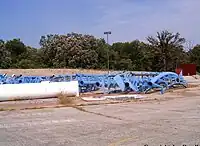 Low ridership, reports of minor injuries, and high maintenance costs ultimately led to the coaster's demise.[6] On September 24, 2002, Six Flags Great America announced that Shockwave would not reopen for the 2003 season.[7] The ride was taken down in the fall of 2002 to make way for Superman: Ultimate Flight, which was originally scheduled to replace the smaller Whizzer roller coaster. Following negative backlash from enthusiasts and parkgoers, the park reversed course and decided to replace Shockwave instead.[8] It was placed into storage behind the park and offered for sale, but it was ultimately scrapped when those efforts failed.