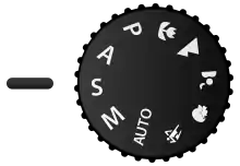Shutter priority is often abbreviated as S (with Nikon, Minolta, Konica Minolta, Sony, Olympus, Sigma, Panasonic) or Tv (for "time value" with Canon, Pentax, Leica) on a camera mode dial.[1]