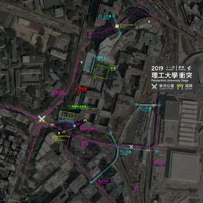 - ↑ 【不斷更新】示威者退守理大 警繼續封鎖. 香港獨立媒體網 (in Chinese (Hong Kong)). 18 November 2019. Archived from the original on 18 November 2019. Retrieved 18 November 2019.