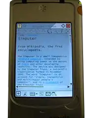 The Simputer is a self-contained, open hardware Linux-based handheld computer that was first released in 2002, developed in, and primarily distributed within India. The product was envisioned as a low-cost alternative to personal computers. The Simputer project had the initial goal of selling 50,000 units, but only sold about 4,000 units by 2005, and has been called a failure by news sources.[1][2]