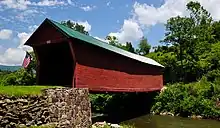 Beginning at the northern end of Sinking Creek Valley and flanked by Sinking Creek Mountain and Johns Creek Mountain, Sinking Creek flows through a narrow valley of farms and pastures. With a moderate current, and access from several crossing roads, the stream offers an easy paddle for canoeists until it nears the town of Newport where it turns north and encounters an 11-foot mill dam and the beginning of a series of rapids. As it nears the New River during low water levels, it disappears underground. The stream is crossed by three covered bridges, a remnant of earlier times when wooden bridges were covered to protect them from the weather.[6]