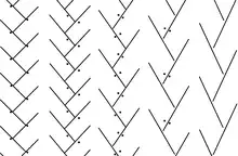 The naming of the five main techniques often leads to misunderstandings, not least because different variants have become established in German usage.[15] One focuses on the presence of symmetry across the direction of travel and the relationship between leg kick and stick use in the movement forms, while another places the emphasis on the activity of the arms. The so-called five-gear model says nothing about the appearance of the movement form, but is based solely on the speed range for which the particular technique is suitable. The following table provides an overview of the movement forms.[8][16]