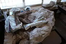{{cite journal}}: CS1 maint: multiple names: authors list (link) - ↑ Grillo, O. N.; Delcourt, R. (2016). "Allometry and body length of abelisauroid theropods: Pycnonemosaurus nevesi is the new king". Cretaceous Research. 69: 71–89. doi:10.1016/j.cretres.2016.09.001.
