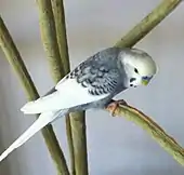 An adult budgerigar with the skyblue slate mutation