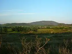 Slieve Gullion (from Irish Sliabh gCuillinn, meaning 'hill of the steep slope'[2] or Sliabh Cuilinn, "Culann's mountain")[3] is a mountain in the south of County Armagh, Northern Ireland. The mountain is the heart of the Ring of Gullion and is the highest point in the county, with an elevation of 573 metres (1,880 ft). At the summit is a small lake and two ancient burial cairns, one of which is the highest surviving passage grave in Ireland. Slieve Gullion appears in Irish mythology, where it is associated with the Cailleach and the heroes Fionn mac Cumhaill and Cú Chulainn. It dominates the countryside around it, offering views as far away as Antrim, Dublin Bay and Wicklow on a clear day.[4] Slieve Gullion Forest Park is on its eastern slope.