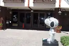 Snoopy's "Joe Cool" persona stands outside "Snoopy's Home Ice".