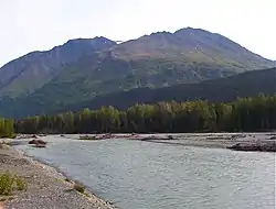 The Snow River is a 28-mile (45 km) tributary of Kenai Lake in the U.S. state of Alaska.[1] Beginning in the Kenai Mountains of the Kenai Peninsula, it flows southwest through Chugach National Forest where its main and south forks join to near Primrose at the southern inlet of the lake.[3] The river mouth is about 12 miles (19 km) northeast of Seward.[1] Along its final reaches, the river intersects the Iditarod Trail and passes under the Seward Highway.[3] The glacier from which it flows has an associated glacial dammed lake that releases every few years, often causing flooding in Primrose and Kenai Lake.[4]