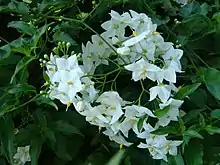Solanum laxum, commonly known as potato vine, potato climber or jasmine nightshade, is an evergreen vine in the family Solanaceae.[2] It is native to South America and commonly grown as an ornamental garden plant.[3]