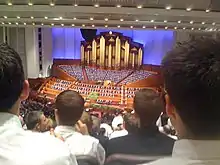 A solemn assembly is a formal and sacred procedure in the Church of Jesus Christ of Latter-day Saints (LDS Church) conducted to give added emphasis to the purpose of the occasion. Solemn assemblies are held at the dedications of temples and for specially-called meetings to provide instruction to church leaders.[1] Solemn assemblies are also held for the purpose of sustaining a new church president, who church members consider to be a prophet, seer, and revelator.[2] Such assemblies are held, in particular, to follow the law of common consent. In 1831, a year after Joseph Smith established the Church of Christ, church members believe he was instructed by revelation to "call your solemn assembly, that your fastings and your mourning might come up into the ears of the Lord of Sabaoth."[3] Historically, solemn assemblies were held on special occasions of major religious importance in ancient Israel.[4]