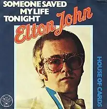 "Someone Saved My Life Tonight" is a song, with music by English musician Elton John and lyrics by Bernie Taupin, from John's 1975 album Captain Fantastic and the Brown Dirt Cowboy. It was released as a single on 23 June 1975, the only single released from the album. Like the rest of the album, the song is autobiographical, and addresses an attempted suicide by John.