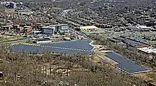 ![]() Color-enhanced USGS satellite image of Washington, D.C., taken April 26, 2002. The "crosshairs" in the image mark the quadrant divisions of Washington, with the U.S. Capitol at the center of the dividing lines. To the west of the Capitol extends the National Mall, visible as a thin green band in the image. The Northwest quadrant is the largest, located north of the Mall and west of North Capitol Street. | |