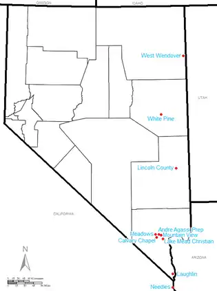 The Southern Nevada 2A Region is a part of the Nevada Interscholastic Activities Association, governing the mostly-southern part of Nevada for high school athletics. There are currently 10 member schools in the Southern 2A league for the 2011–2012 school year, one of which is located in California (Needles High School).