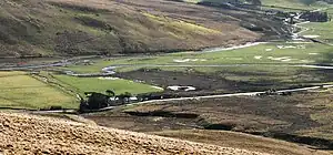 The Southern Uplands are home to the UK's second highest, and Scotland's highest, village, Wanlockhead, 430 m (1,410 ft) above sea level.[6]