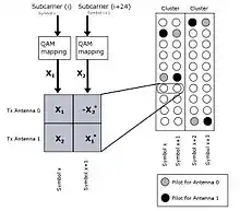 - ↑ S.M. Alamouti (October 1998). "A simple transmit diversity technique for wireless communications". IEEE Journal on Selected Areas in Communications. 16 (8): 1451–1458. doi:10.1109/49.730453.