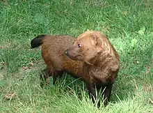 Speothos is a genus of canid found in Central and South America. The genus includes the living bush dog, Speothos venaticus, and an extinct Pleistocene species, Speothos pacivorus. Unusually, the fossil species was identified and named before the extant species was discovered, with the result that the type species of Speothos is S. pacivorus. S. pacivorus had a larger overall body size and a double-rooted second lower molar. It has been proposed that Speothos originated in the Brazilian highlands sometime during the Pleistocene.[1]