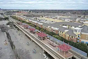 Spring Valley station is a DART Light Rail and bus station in Richardson, Texas. It is the fourth elevated Red Line station on the DART system, and it is located off Spring Valley Road, just east of US 75 (Central Expressway). It opened on July 1, 2002 and is a station on the Red Line, serving nearby residential areas and the nearby Fossil, Inc.