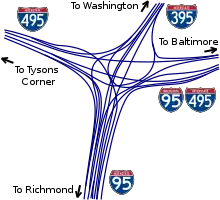 The Springfield Interchange, also known as the Mixing Bowl,[1][2] is the interchange of Interstate 95, Interstate 395, and Interstate 495 in Springfield, Virginia, outside of Washington, D.C. The interchange is located at exit 57 on the Capital Beltway, exit 170 on I-95, and exit 1 on I-395.