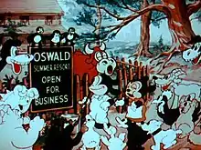 On another part of the countryside, Oswald and an unnamed sister of his are working on their inn after it had been closed for the winter. They dust the furniture and shake the dirt off the carpets. After completing their tasks, the inn is ready for service. Oswald and his sister go outside for a little stroll.