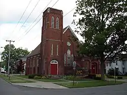 Springville Center for the Arts is a non-profit community multi-arts center located at Springville in Erie County, New York. It is housed in the historic The Baptist Church of Springville, a historic Baptist church. It was built in 1869, and is a red brick Late Gothic Revival-style church with limestone trim. It features a square corner bell tower.[2]