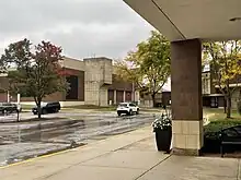 St. Charles East High School is located at 1020 Dunham Road in St. Charles, Illinois. At one time it was the only high school serving the city of St. Charles. Prior to moving to its current location in 1977, the high school was located in the middle of town at the corner of Main Street and Seventh Street, in the building that now serves as Thompson Middle School. The new St. Charles High School campus was built in the open fields to the east of Dunham Road, adjacent to the existing Norris Recreation Center and Dunham Junior High School (which educated 7th graders for the 1975–76 and 1976–77 school years before being annexed into the new High School campus for the 1977–78 school year). The campus change was not made without controversy – the old downtown campus was an "open" campus that allowed the student body to depart and return during the school day, while the new campus is "closed". The combined complex was constructed in a Brutalist style. The first month in the new school featured student protests, leaky roofs, and problems with the school's (at the time) state-of-the-art solar heating system. The first class to graduate after attending all four years at the newly built high school was the class of 1981.