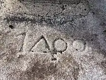 Carving at the base of the cross, reading "1400"