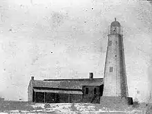 The lighthouse was automated by the United States Coast Guard in 1960, and in 2000 the Coast Guard spent $150,000 in 2000 to stabilize the lighthouse. In 2000[2] or 2001[3] the lighthouse's fourth-order Fresnel lens was deactivated and a modern solar-powered beacon was placed outside the lantern room. The historic Fresnel lens remained in place in the tower for over a decade.[2] In July 2005, Hurricane Dennis broke a window of the lantern, flooding the inside of the tower.