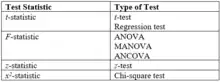 • Test statistic: A value calculated from a sample without any unknown parameters, often to summarize the sample for comparison purposes.