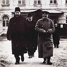 General Alekseyev with Prince Lvov and War Minister Guchkov at the Stavka, 1917.