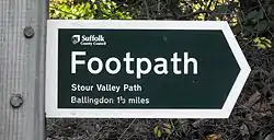 The Stour Valley Path is a 96-kilometre (60 mi) long-distance footpath in Suffolk, England, from Newmarket (52°14′27″N 0°23′51″E / 52.2407°N 0.3976°E / 52.2407; 0.3976 (Stour Valley Path (Newmarket trailhead))) to Cattawade (51°57′25″N 1°03′23″E / 51.9570°N 1.0563°E / 51.9570; 1.0563 (Stour Valley Path (Cattawade trailhead))), a nature reserve near Manningtree.[1]