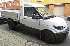 The Max and Giga models share the same technical parameters. All are equipped with an electric motor driving the front axle[2] with a power of 66 HP, a maximum torque of 200 Nm and a top speed limited to 85 km/h (53 mph).[2] The manufacturer made it possible to choose between batteries with a capacity of 20 or 40 kWh, offering respectively a maximum range on a single charge of approx. 101 or 205 kilometers.[2]