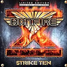 Strike Ten is the eighth album by German heavy metal band Bonfire, but the tenth album release, hence the name. It was released in 2001 by BMG International and features a bonus song that was cut from the Fireworks album called "Angel in White", which was also a B-side to the single "Sleeping All Alone".