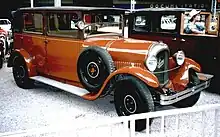 After the war the manufacturer announced an ambitious 1408 cc V8 engined car.[5] The car sat on a 2,450 mm (96.5 in) wheelbase, and appeared at the 15th Paris Motor Show in October 1919 with a 2-seat "Torpedo" type body and a 17,500 franc manufacturer's price.[5] Little more was heard of this car, however,[5] and during the early 1920s the manufacturer focused on 4-cylinder models. At the Motor Show in October 1924 they were exhibiting their 4-cylinder "Type D" with 1843 cc and priced in bare chassis form at 14,100 francs.[6] "Torpedo" bodied and "Landaulet" versions were also listed, respectively at 20,000 francs and 25,000 francs.[6]