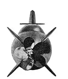 The first military submersible was Turtle (1775), a hand-powered acorn-shaped device designed by the American David Bushnell to accommodate a single person.[15] It was the first verified submarine capable of independent underwater operation and movement, and the first to use screws for propulsion.[16]